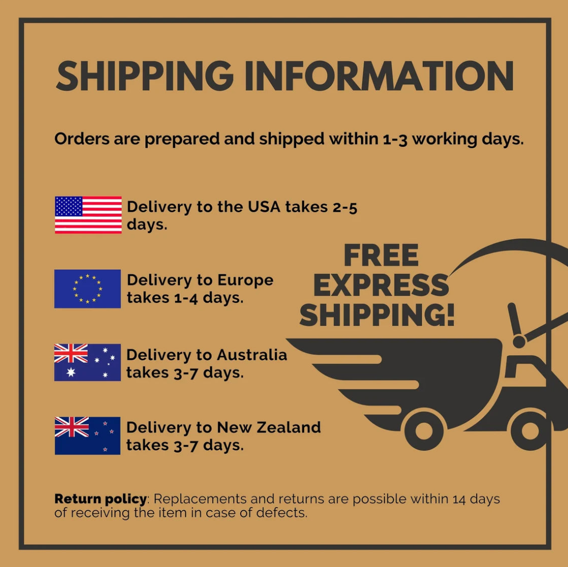 🇦🇺 🇳🇿 Delivery to Australia and New Zealand takes 3-7 days.